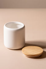 Dispenser de Algodón de Cerámica con tapa de Madera