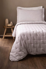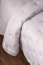 Acolchado ideal para usar todo el año con un relleno de 200g/m2 de fácil lavado. Tiene una tela exterior super suave que viene en dos opciones de color super clásicos que combinan con todo. Este producto viene con una funda con cierre y tiene en el frente detalles de repujado ultrasónico como los Quilts. Viene con packaging de bolsa tote en la misma tela del producto.