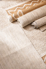 Esta alfombra combina el diseño rústico y natural del yute con la suavidad y calidez de la lana, ofreciendo una pieza única y versátil para cualquier espacio. Es ideal para colocar como complemento decorativo en entradas, salas de estar o habitaciones. El borde de la alfombra está confeccionado en lana gris claro, mientras que el cuerpo central es de yute con lana en color natural . La mezcla de materiales naturales, como el yute y la lana, está muy en tendencia en la decoración actual, especialmente en estilos como el Boho chic, nórdico y clásico. Hecho a Mano.