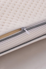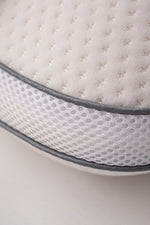 Almohada premium de 40D memory foam de 12cm de altura. Por su característica de sistema de agujeros permite que se puede mantener fresca y aireada todo el tiempo. Tela exterior con 20% de viscosa que le da más confort y viene con cierre para lavar la funda cuando sea necesario. El packaging es una bolsa de la misma tela tipo bolsito que permite después volver a guardarla.