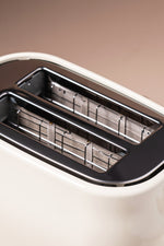 Esta tostadora HOM en color off white tiene un diseño retro y acabado en acero inoxidable. Su capacidad para tostar hasta dos rebanadas a la vez la hace ideal para familias pequeñas. Tiene un selector de seis niveles de tostado, que te permite ajustar el grado de dorado de tu pan según tus preferencias. Además, cuenta con funciones adicionales como la opción de descongelar, calentar y cancelar. Su bandeja recogemigas desmontable facilita la limpieza, asegurando que puedas mantenerla en óptimas condiciones sin complicaciones. Además, su diseño compacto permite que se ajuste sin problemas en cualquier mesada, maximizando el espacio en tu cocina.