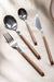Juego de cubiertos de madera de 16 piezas, que se compone de 4 cucharaditas, 4 cucharas, 4 cuchillos y 4 tenedores. Este producto presenta puntas de acero inoxidable, perfectamente complementadas con la belleza natural de los mangos de madera que lo hace único y atemporal. Los tonos cálidos y ricos de la madera crean un contraste exquisito con el elegante acero inoxidable pulido, añadiendo un toque chic a cualquier mesa.