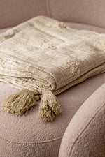 Manta Slub Algodón con Pompones Verde 125×150 cm