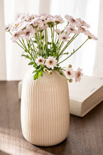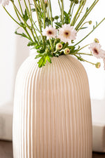 Florero de Cerámica Ancho Acanalado con Pico Angosto