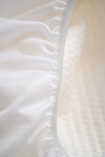 Su superficie matelaseada es suave al tacto, silenciosa y confortable. Se coloca fácilmente como una sábana ajustable, asegurando que no se desplace durante la noche. Es la base higiénica fundamental para tu santuario de descanso.