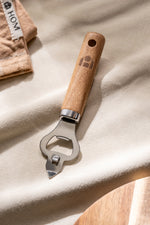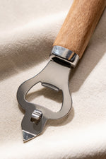 Un utensillo tradicional y funcional para abrir botellas con tapa de corona. El mango de madera le da un toque rústico y cómodo, al tiempo que ofrece un buen agarre. Aunque los destapadores más comunes suelen ser de metal, la versión de madera se ha vuelto popular por su diseño atractivo y su durabilidad.