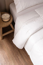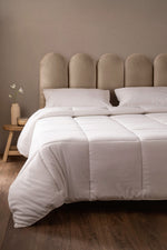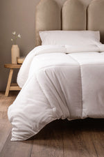 Acolchado de fibra siliconada llamado muchas veces pluma sintética, por su similitud con el duvet. Tiene la particularidad de ser super abrigado con un relleno de 350gsm2 (más del doble de un edredón común de 150gsm2). Super versátil se puede usar todo el año y es fácil de lavar y guardar hasta el invierno que viene en caso de preferir algo más liviano el resto del año. Viene con packaging de bolsa tote en la misma tela del producto.