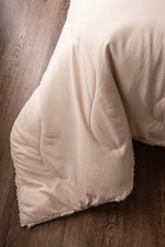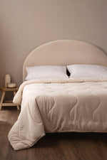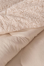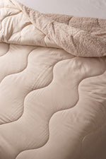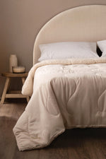 Acolchado en un color neutro para combinar con todo, tiene una terminación de lavado que da una extrema suavidad al tacto y tiene detalle de costuras en ondas con el reverso de corderito para una cama versátil, calentita y fácil de lavar. Viene con packaging de bolsa tote en la misma tela del producto.