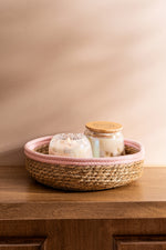 Cesto Contenedor Redondo con Borde Color Rosa Peach de 27X9Cm