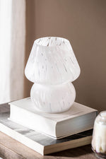1 Lámpara de Vidrio Jaspeado Blanco (Luz difusa y suave).