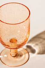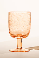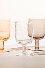 El diseño de esta copa tiene un sutil efecto "bubble" (burbujas) cuenta con una base robusta que garantiza estabilidad, evitando volcaduras accidentales, lo que es especialmente útil en ambientes de alta actividad social o al servir bebidas carbonatadas. Posee una forma estilizada para agua o vino pero por su tamaño y diseño también la hacen adecuada para servir incluso postres.
