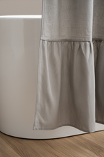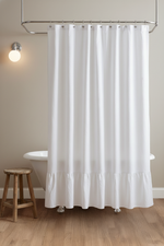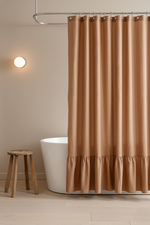 Creemos que el baño es un ritual, no un trámite. Por eso diseñamos esta cortina pensando en la suavidad y la textura. Confeccionada en Tusor de alta calidad, su caída pesada y natural aporta instantáneamente esa calidez que le suele faltar a los baños.