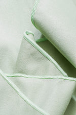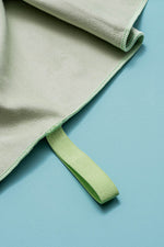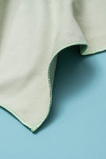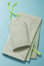 Toallón de secado rápido con un tacto super suave y en tamaño XL de 80x160cm. Tiene una terminación de bordadora a contra tono y un elástico para poder enrollarlo y guardar en cualquier bolso de manera pequeña. El packaging es una bolsa hecha de la misma tela.